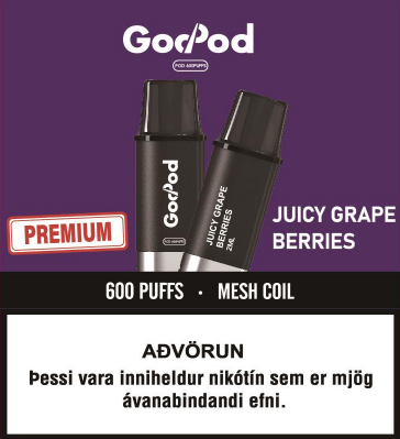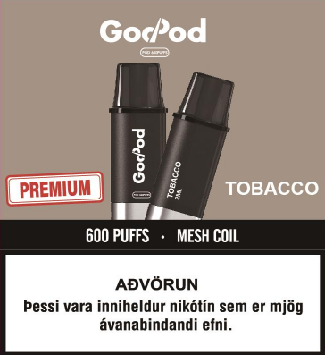 Í hverjum kassa eru tvö 2ml (800 Puffa) hylki.